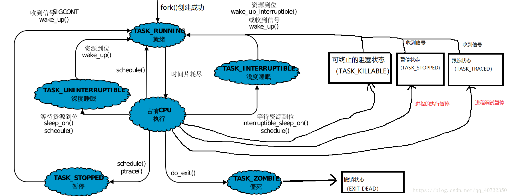 僵尸撤销状态(EXIT_DEAD): 这是最终状态, 父进程调用 wait 函数族“收尸”后, 进程彻底由系统删除。