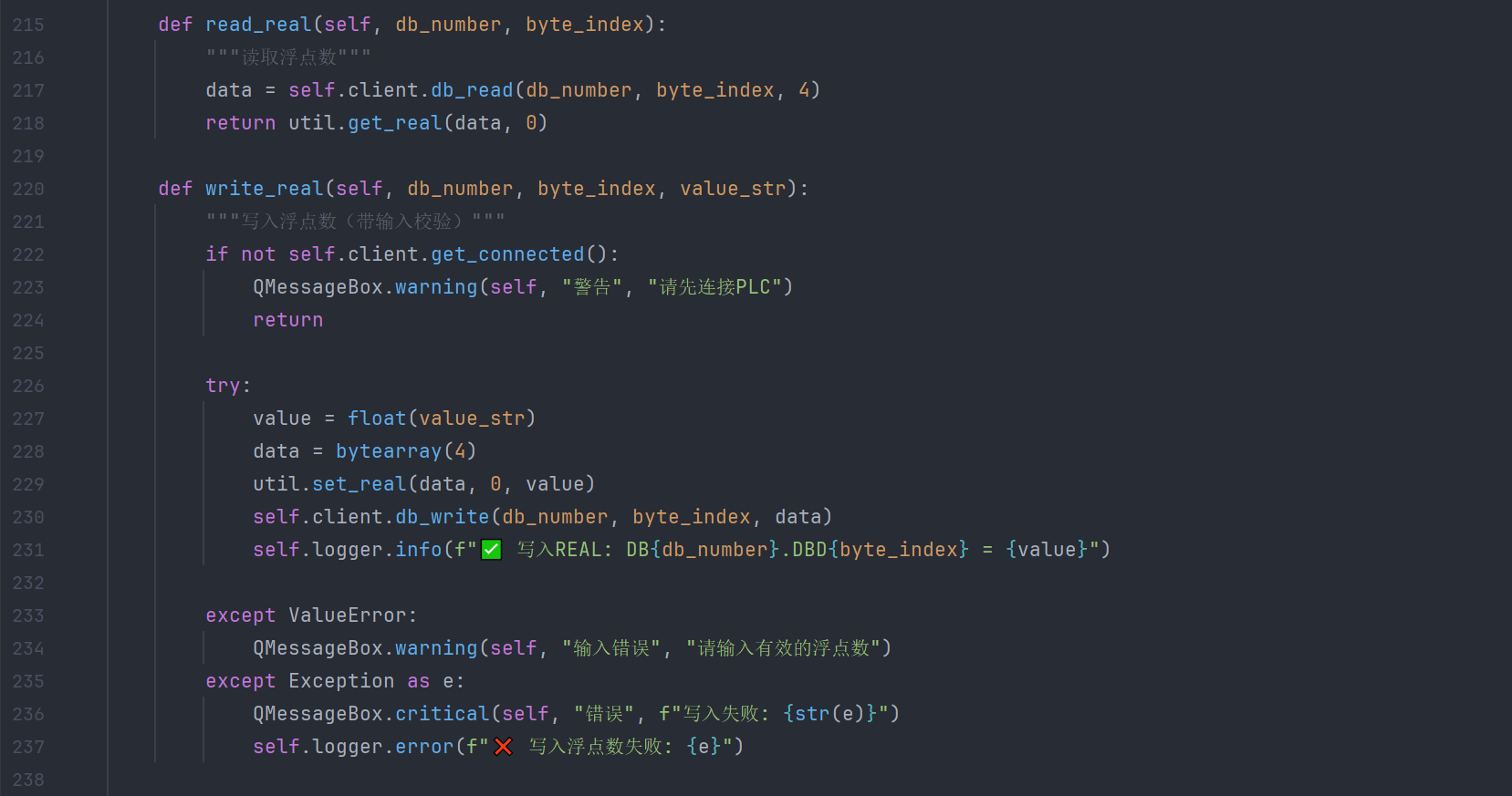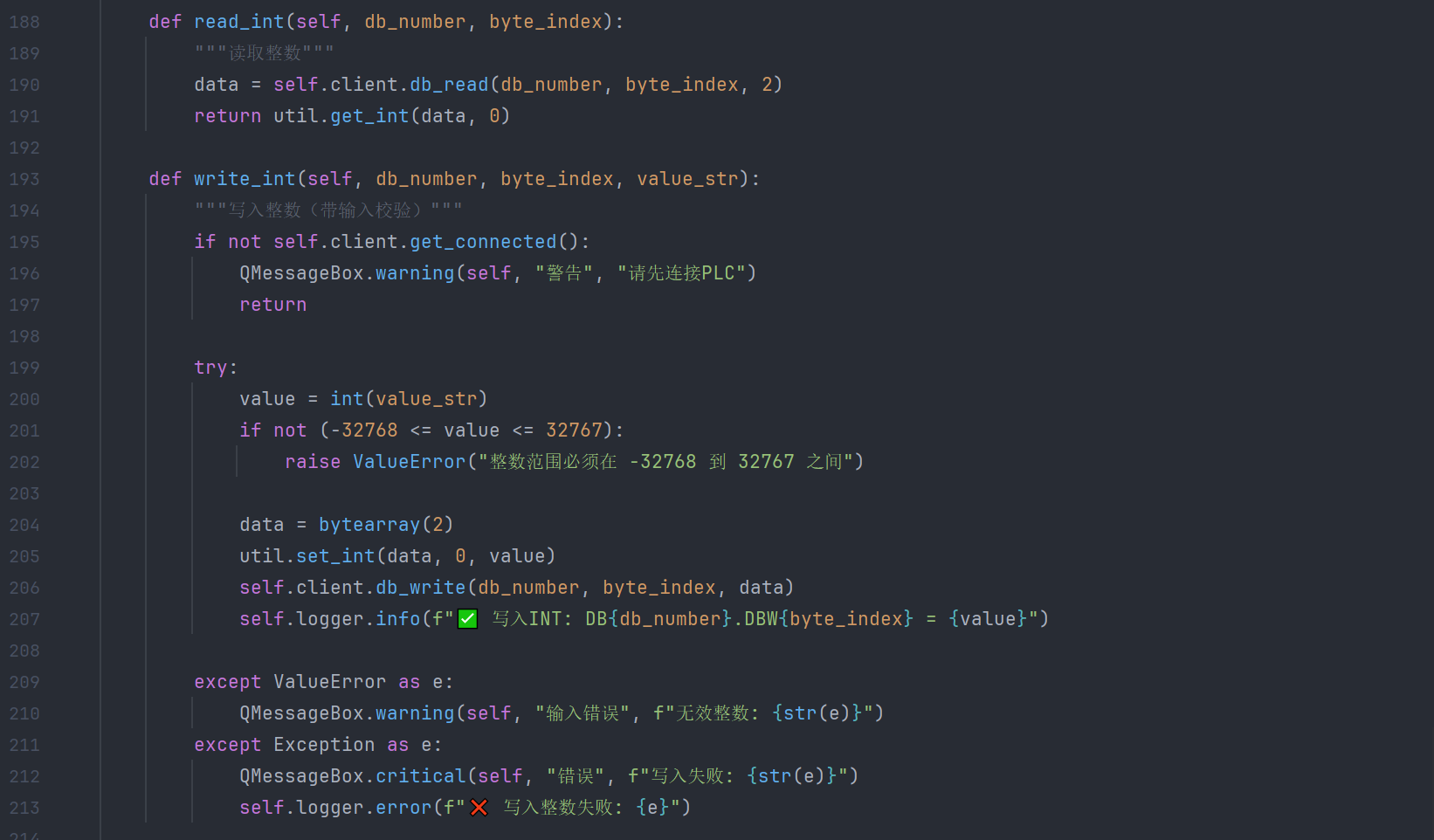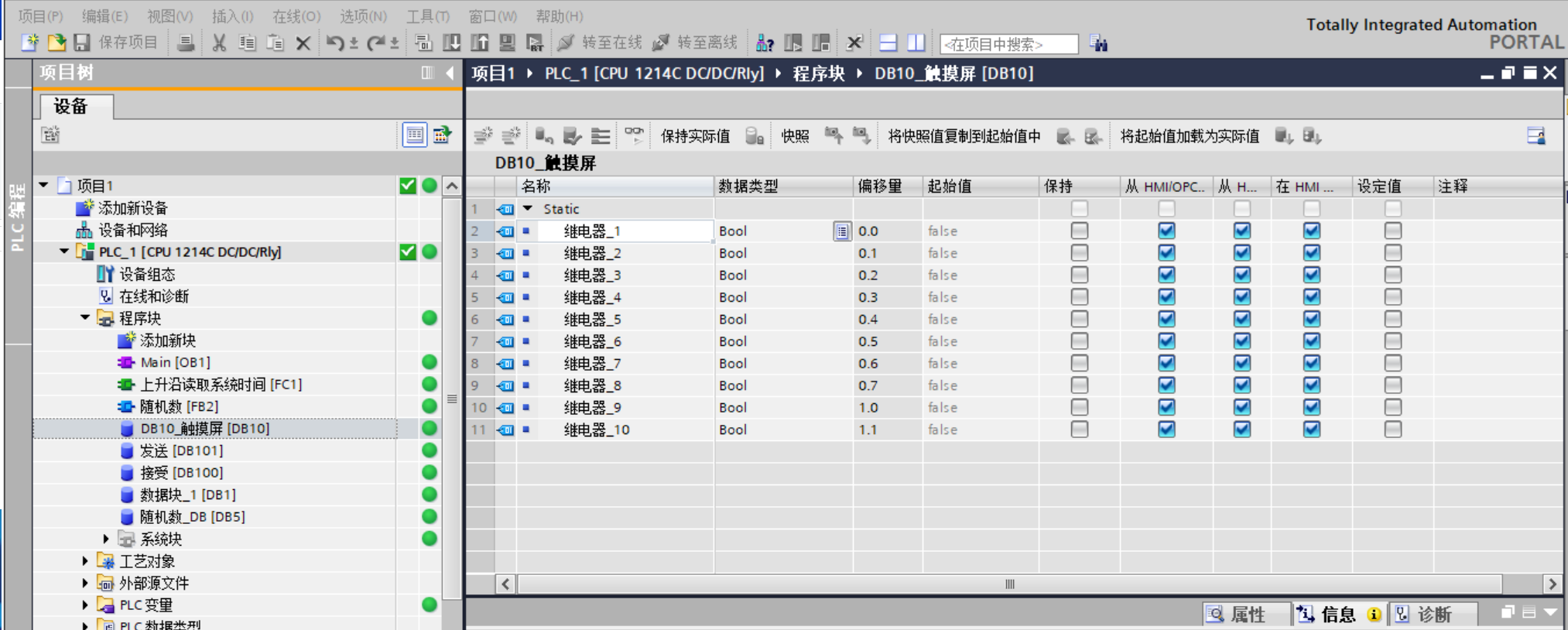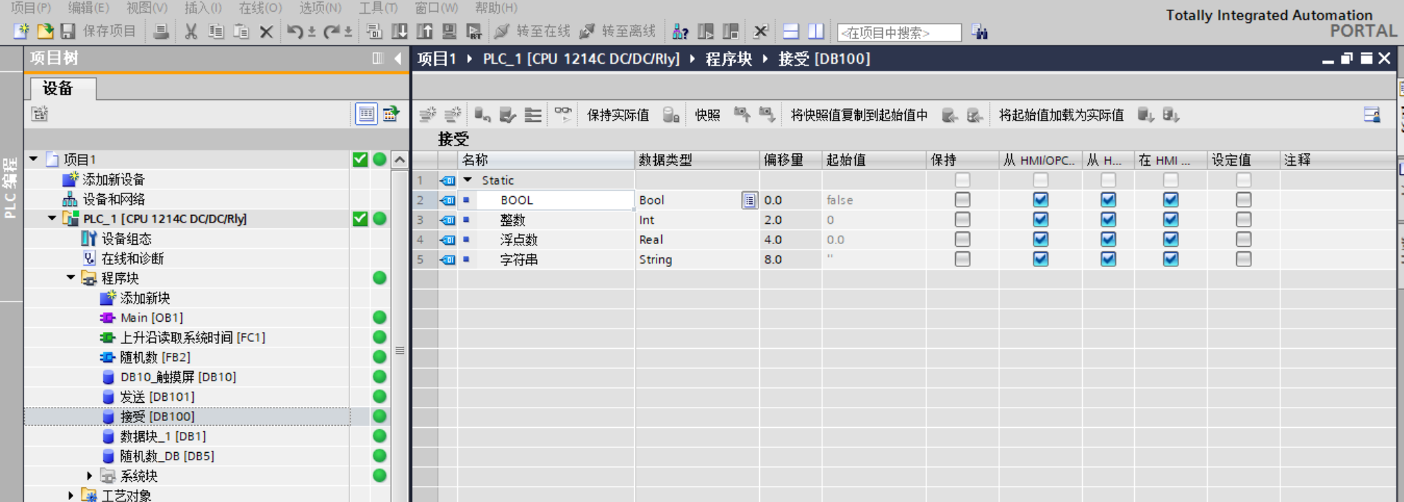 plc写了两个3个DB块:一个是对10个Q点的改写(DB10);一个是发送数据块(DB101)上位机通过线程每隔1秒自动读取DB块数据;一个是接收数据块(DB100)上位机向PLC写入数据;