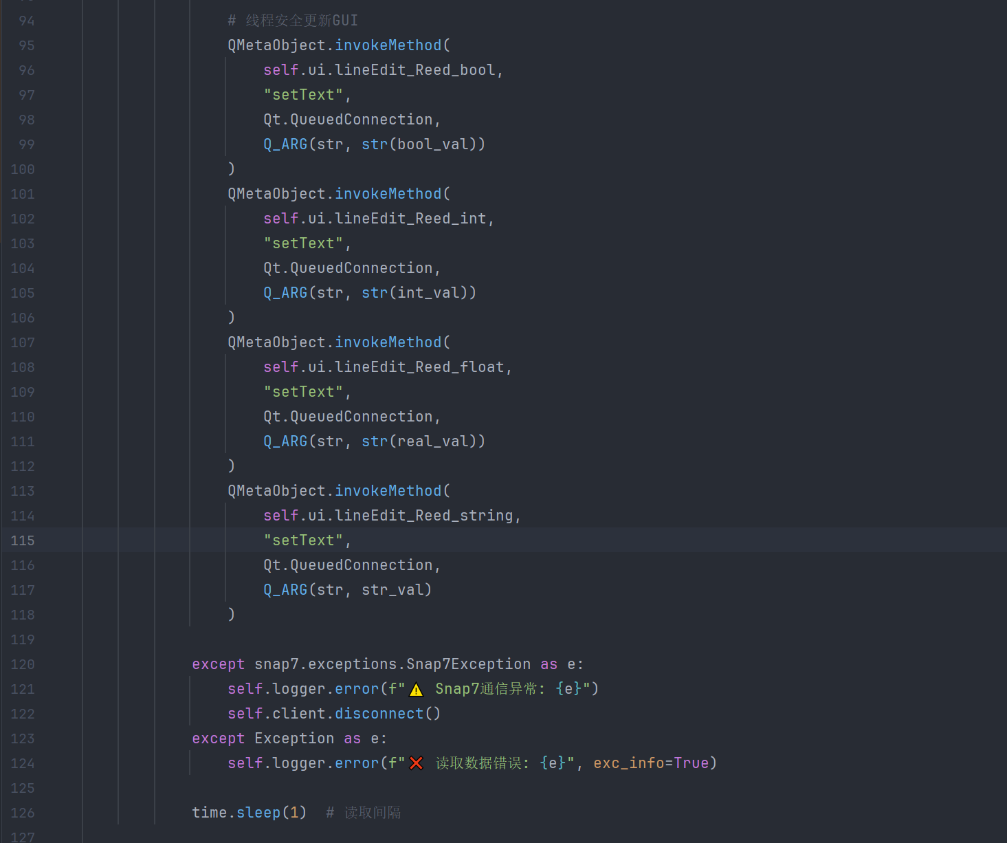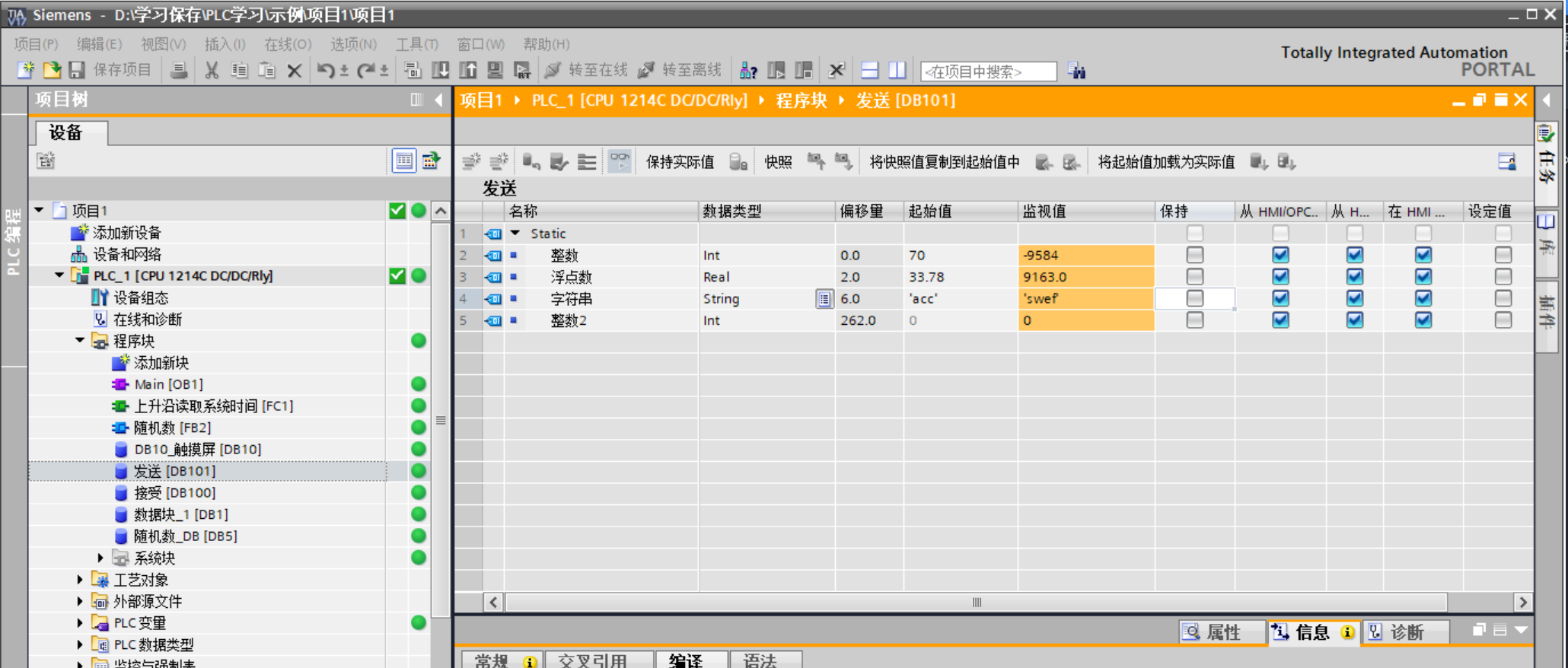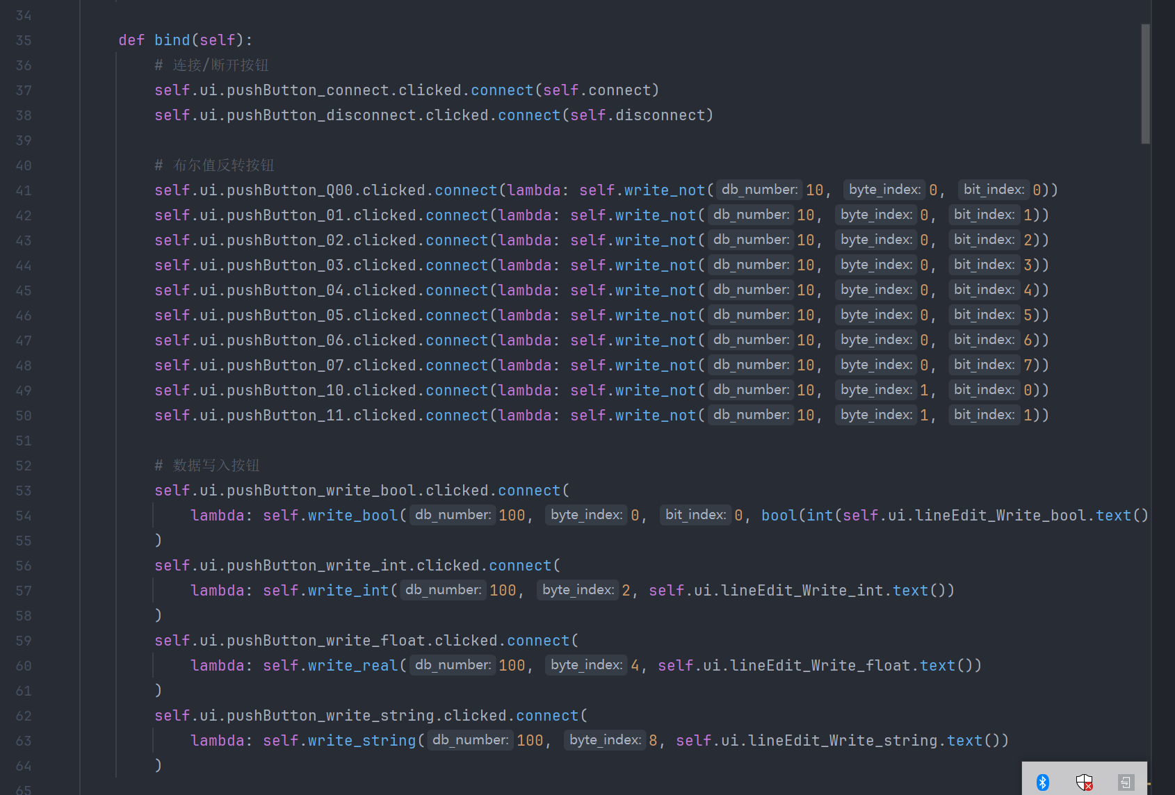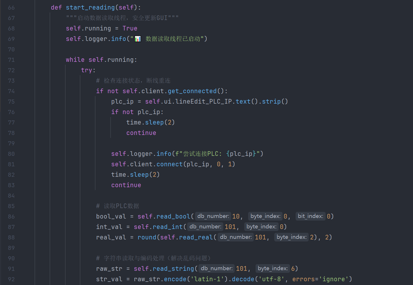 plc写了两个3个DB块:一个是对10个Q点的改写(DB10);一个是发送数据块(DB101)上位机通过线程每隔1秒自动读取DB块数据;一个是接收数据块(DB100)上位机向PLC写入数据;