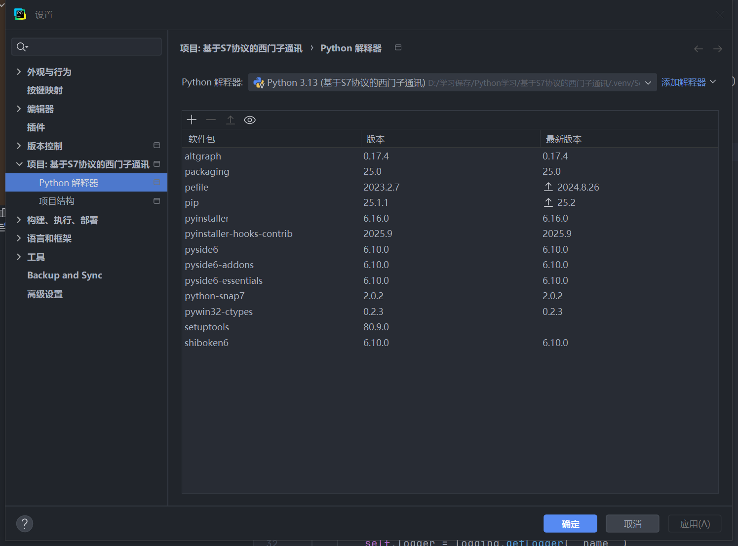 我用的IED软件PyCharm,Python版本号为3.13,PLC是1214 AC/DC/RLY