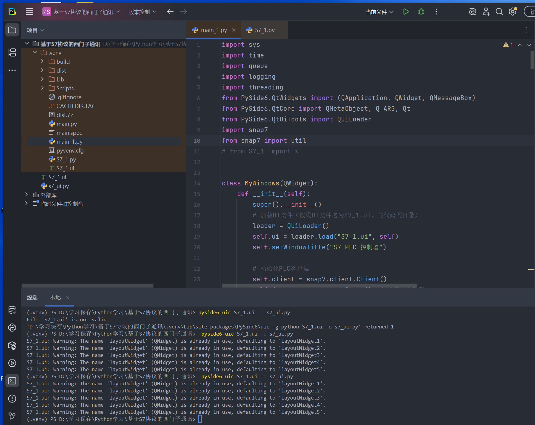 在终端下输入:pyside6-uic S7_1.ui -o S7_1.py 按回车