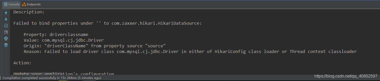 今天使用spring initializr搭建一个模块,并且勾选了“mybatis framework”的依赖,结果运行的时候就报了错:Failed to load driver class com.mysql.cj.jdbc.Driver in either of HikariConfig class loader or Threa。