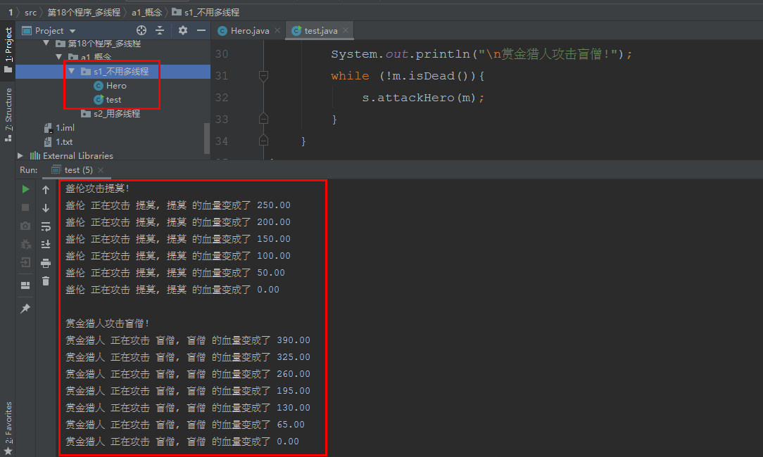 不用多线程,就只能一个英雄攻击完另一个英雄,别的英雄才能攻击
