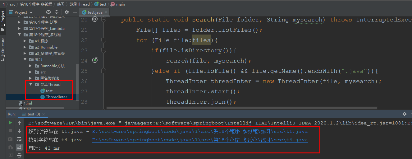 遍历所有文件,当遍历到文件是 .java 时,创建一个查找文件的任务,把这个任务扔进线程池去执行,继续遍历下一个文件