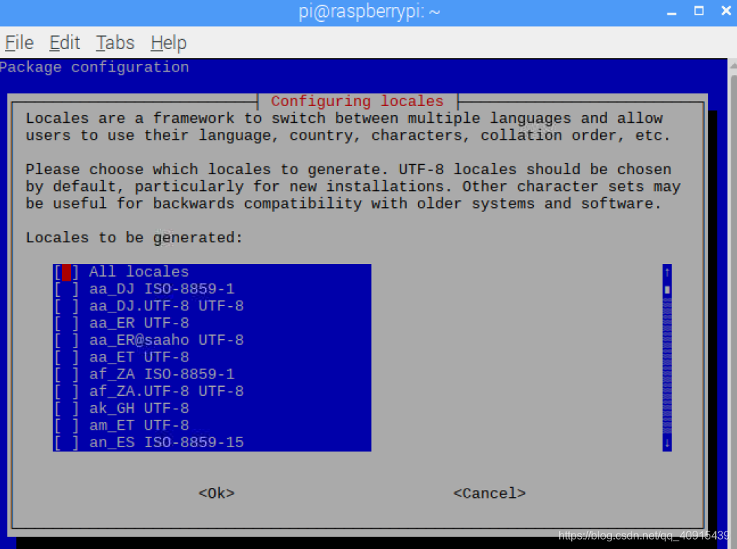 EN_GB.UTF-8 UTF-8, 将前面的星号“*”通过敲“空格键”去掉。