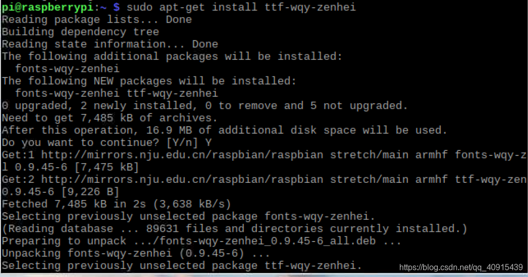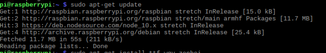 由于树莓派默认是采用英文字库的,而且系统里没有预装中文字库,所以即使你在locale中改成中文,也不会显示中文,只会显示一堆方块。因此需要我们手动来安装中文字体,好在有一个中文字体是免费开源使用。