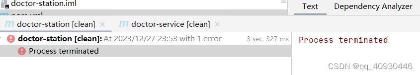 Process terminated (使用nacos中出现的Bug) 最明显的影响是:端口号定义并没生效,还是用的默认8080端口。因为是两个子项目启动,都在竞争同一个端口,就只能正常启动一个子项目。就是这个bug,困惑了我两天:进程终止,不论是clean还是compile都是终止进程。1.父工程缺少 pom2.父项目中缺少这个依赖,像是缺少一种组件。