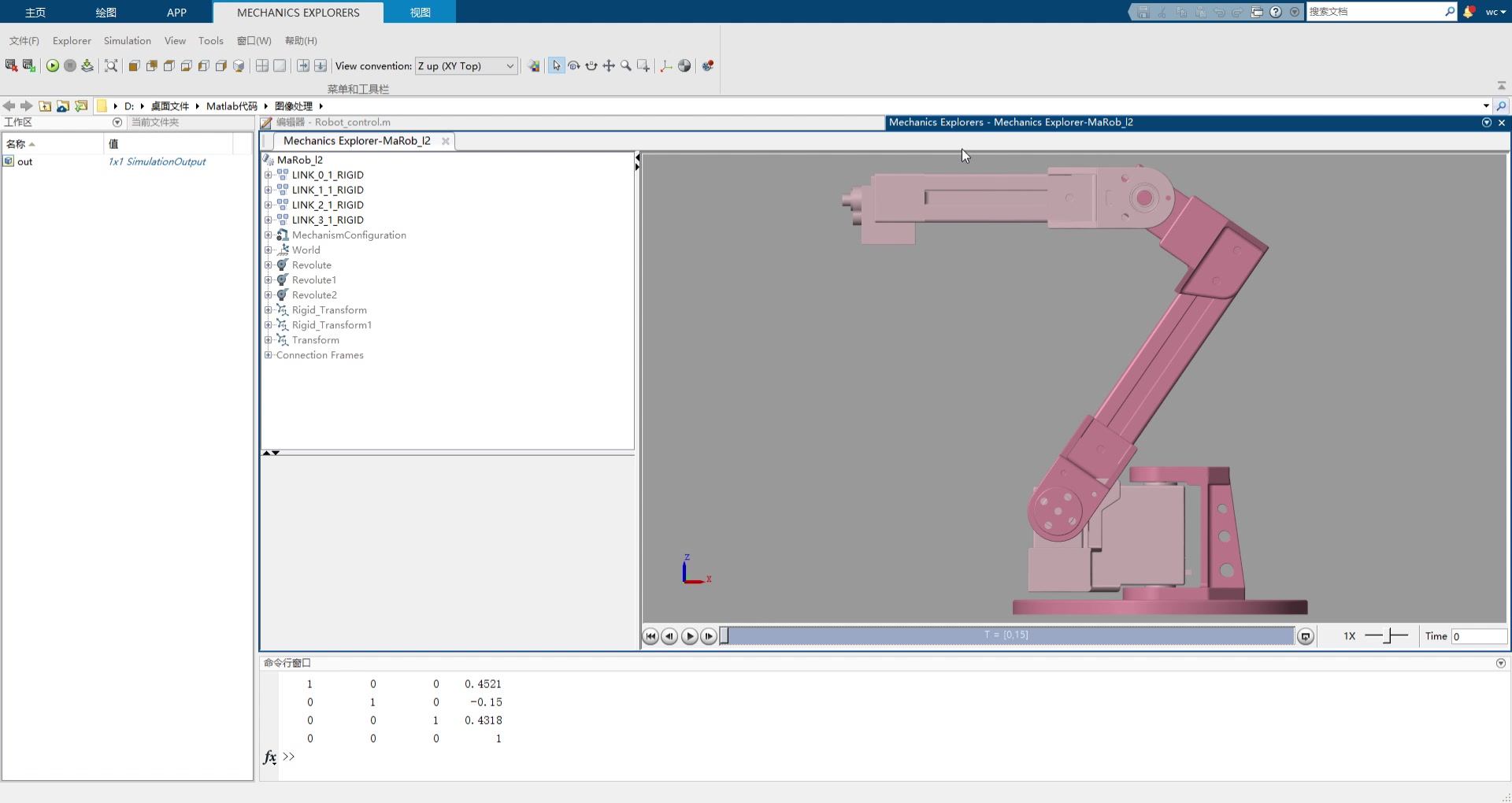 Matlab机器人仿真(二):MATLAB求机器人的正逆解 机器人正逆解的概念:正解:已知机器人各个关节角的值→机器人末端在空间中的位置;逆解则相反,而逆解是机器人中很重要的东西。下面是利用matlab求机器人的逆解(正解同理):matlab代码如下所示:clear;clc;%建立机器人模型L_1 = 20;L_2 = 50;L_3 = 40;% theta d a alpha offset(为机器人的关节初始偏置自行要求)L(1) = Link([0 L_1 0 pi/2]);L(2) =
