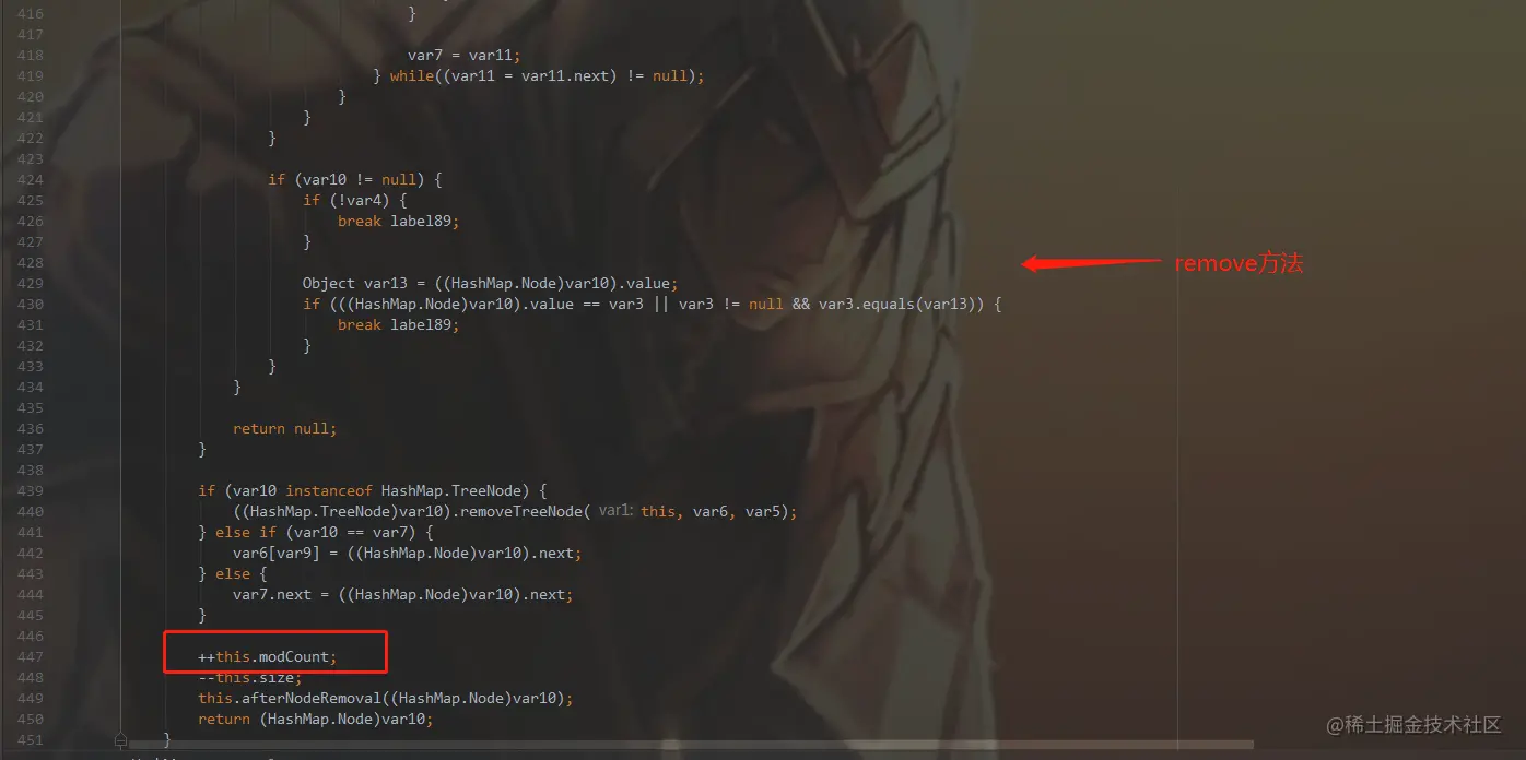 再看一下hashmap的remove操作是做了什么: