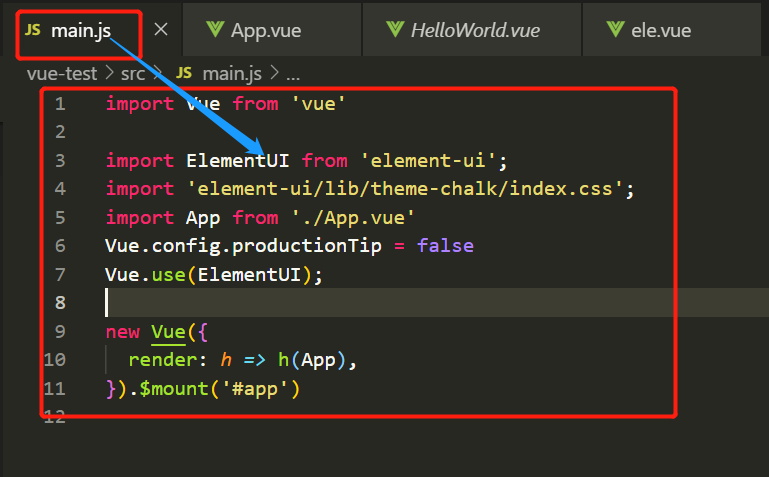 5,接着在这里,我新建了一个文件,名为ele.vue作为引入element组件的单文件组件文件,