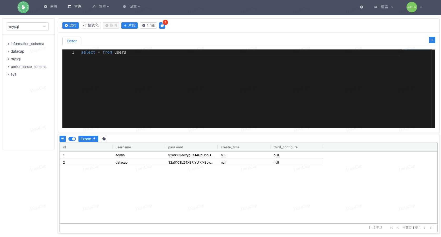 中选择数据源,就可以在编辑器中编写SQL进行数据源的查询等相关操作。