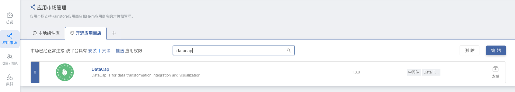 DataCap 已发布到 Rainbond 开源应用商店,可通过 Rainbond 开源应用商店一键部署 DataCap。