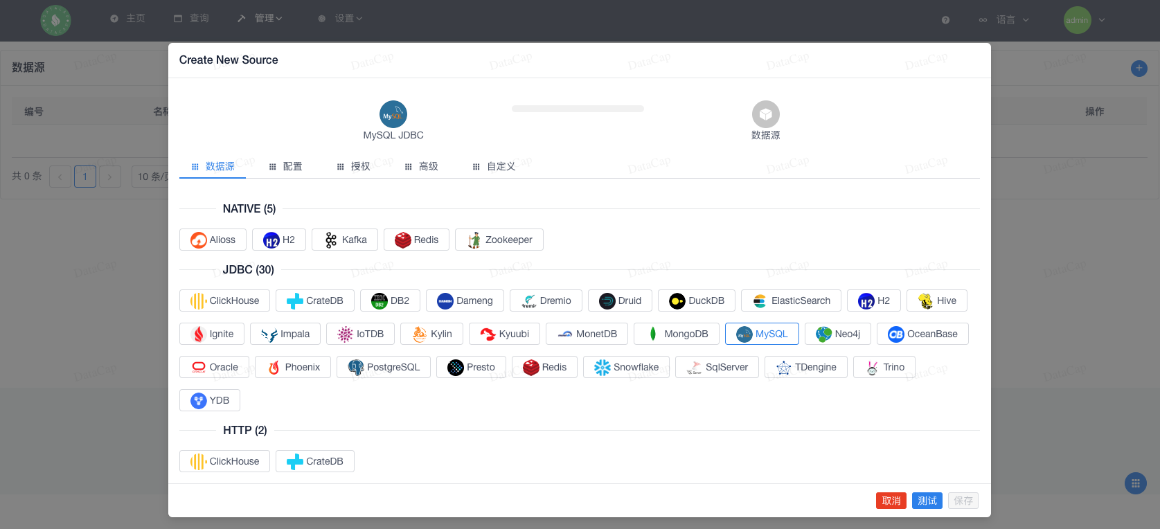 DataCap是用于数据转换、集成和可视化的集成软件,支持多种数据源、文件类型、大数据相关数据库、关系数据库、NoSQL数据库等。通过该 DataCap 可以实现对多个数据源的管理,对数据源下的数据进行各种操作转换,制作数据图表,监控数据源等功能。