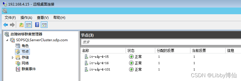 在其中一个集群节点的SQL Server中验证各节点的投票数 ,在其中一个集群节点的SQL Server上执行