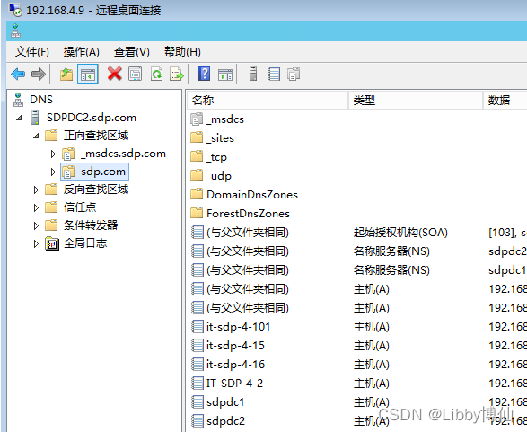 如果因为安装步骤等原因 没有出现sdp.com 在正向查找区域点击右键新建区域
