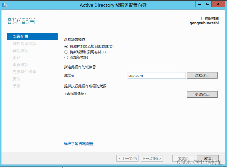 区别在于 是加入已有域,并且需要输入凭证 DCADMIN账号