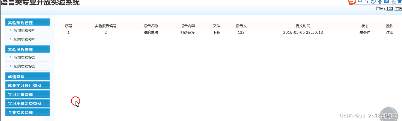 (4)实验报告管理:对实验报告信息进行添加、删除、修改和查看