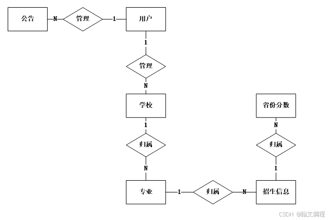 包含以下6个实体,用户实体,公告实体,学校实体,专业实体,招生信息实体,省份分数实体,如图所示: