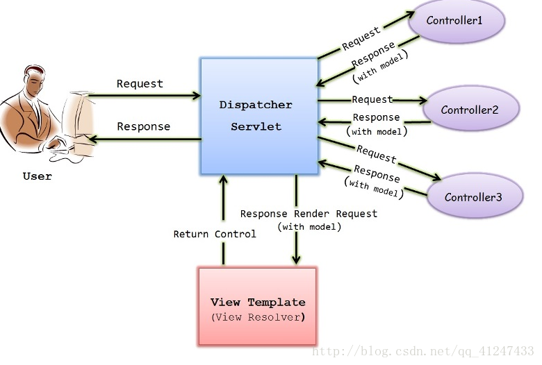 前端控制器依据请求 指定对应的控制器 controller1/2/3