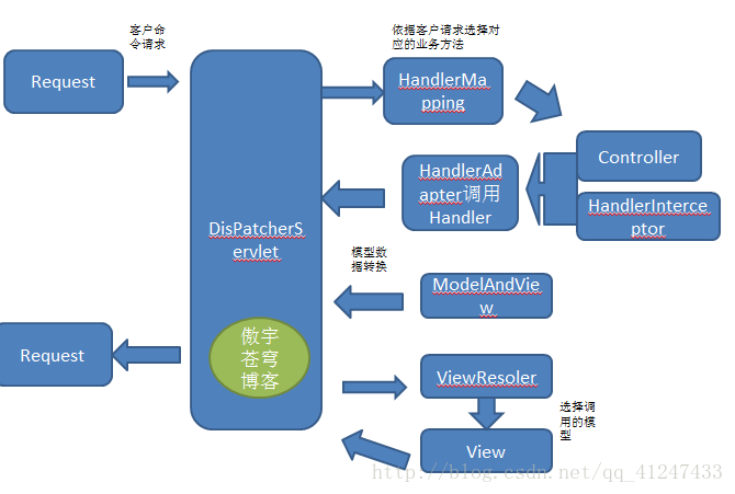用户通过DispatcherServlet 进行请求分发 提供给Controller