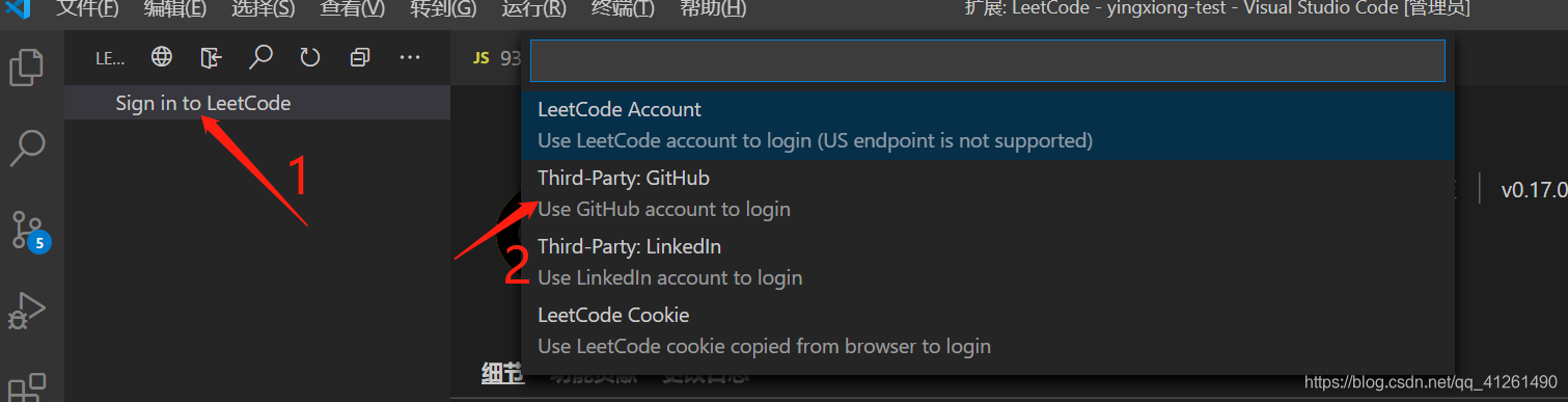 3.登录leetCode账号(我是用github账户登录的,大家可以选择其他方法,遇到问题百度也可以解决)