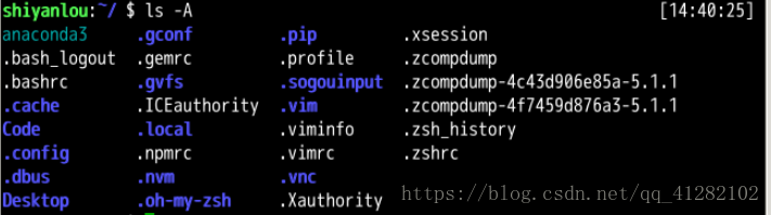 - 显示除了 .(当前目录)和 ..(上一级目录)之外的所有文件,包括隐藏文件(Linux 下以 . 开头的文件为隐藏文件)。