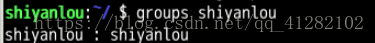 其中冒号之前表示用户,后面表示该用户所属的用户组。这里可以看到 shiyanlou 用户属于 shiyanlou 用户组,每次新建用户如果不指定用户组的话,默认会自动创建一个与用户名相同的用户组(差不多就相当于家长的意思,或者说是老总)。默认情况下在 sudo 用户组里的可以使用 sudo 命令获得 root 权限。