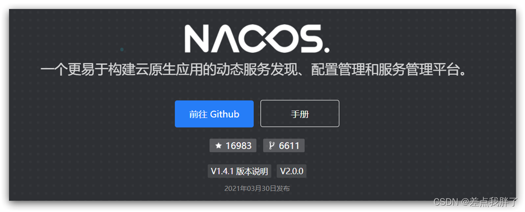 Nacos安装指南 开发阶段采用单机安装即可。在Nacos的GitHub页面,提供有下载链接,可以下载编译好的Nacos服务端或者源代码:GitHub主页:https://github.com/alibaba/nacosGitHub的Release下载页:https://github.com/alibaba/nacos/releases如图:将这个包解压到任意非中文目录下,如图:目录说明:Nacos的默认端口是8848,如果你电脑上的其它进程占用了8848端口,请先尝试关闭该进程。如果无法关闭占用8848端口的进程,也可