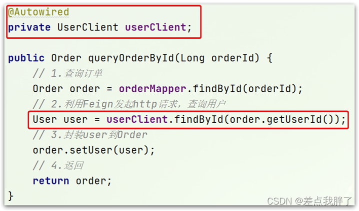 7.微服务-Feign远程调用 使用Feign的步骤:① 引入依赖② 添加@EnableFeignClients注解③ 编写FeignClient接口④ 使用FeignClient中定义的方法代替RestTemplate类型作用说明修改日志级别包含四种不同的级别:NONE、BASIC、HEADERS、FULL响应结果的解析器http远程调用的结果做解析,例如解析json字符串为java对象请求参数编码将请求参数编码,便于通过http请求发送支持的注解格式默认是SpringMVC的注解失败重试机制。