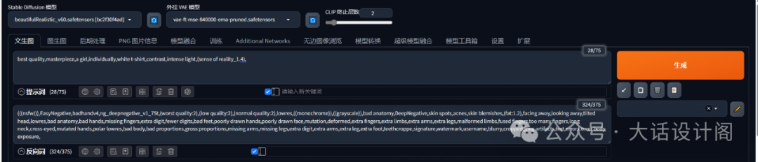首先启动大模型beautifulRealistic_v60,最终设置如下: