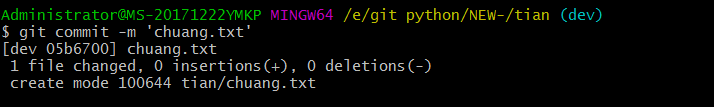 在本地仓库直接创建一个新的文件夹tian,在文件夹中添加chuang.py文件。在这里GGit Bash,之后输入以下代码: