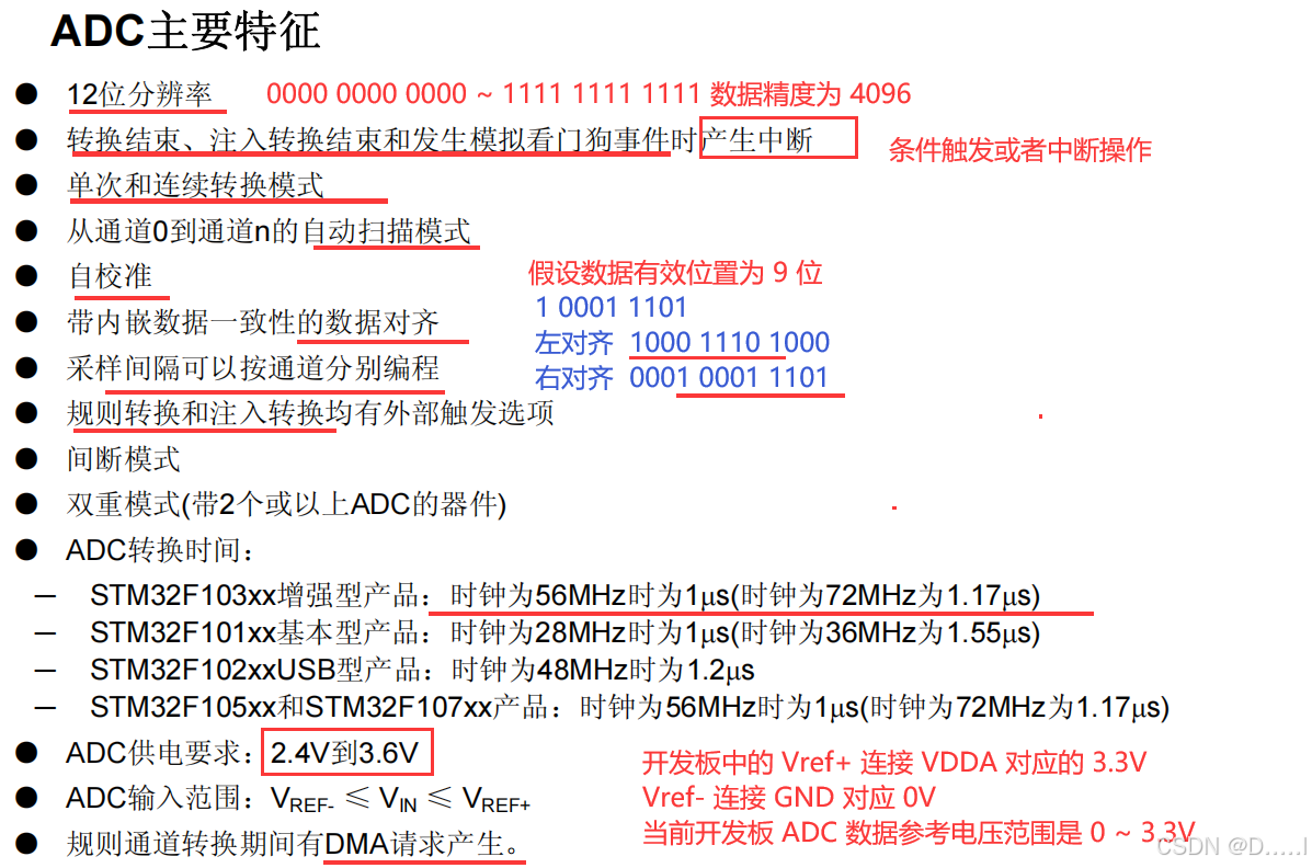 - ADC 数据采样精度范围是 12 位 ==> 0000 0000 0000 ~ 1111 1111 1111