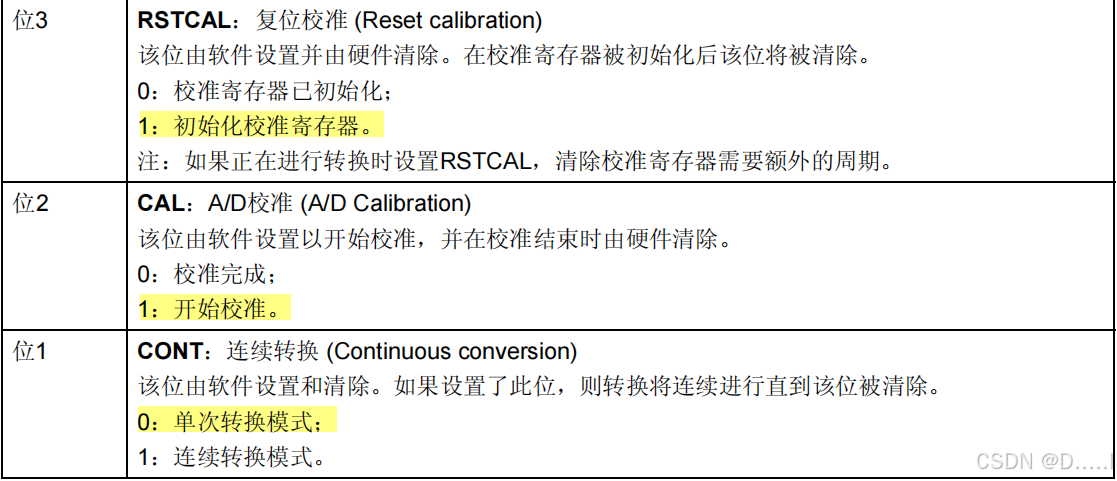 - RSTCAL [位3]::复位校准(Reset calibration) ==> 1