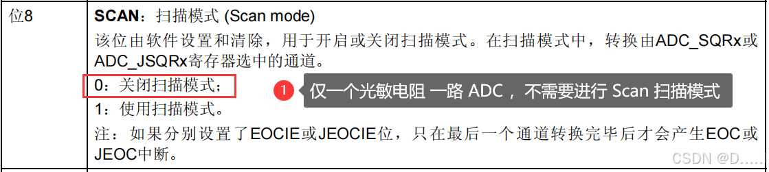 ADC3->CR1 &= ~(0x01 << 8); // SCAN 扫描模式关闭