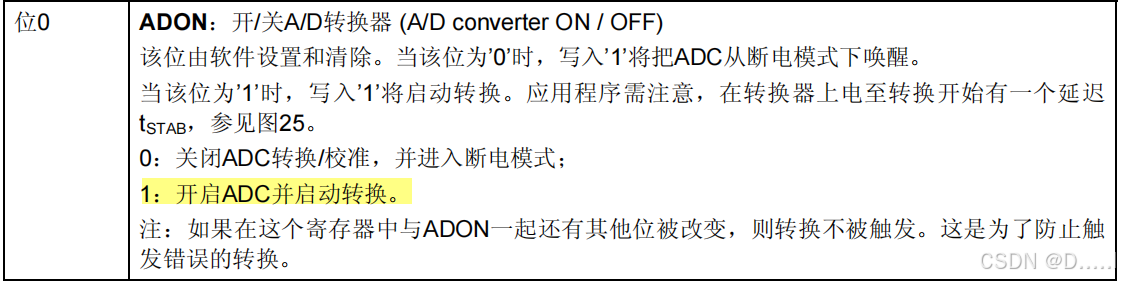 - ADON**[位0]**::开/关A/D转换器(A/D converter ON/ OFF) ==> 1