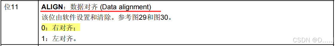 - ALIGN [位11]::数据对齐(Data alignment) ==> 0 右对齐