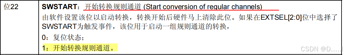 - SWSTART**[位22]** : 开始转换规则通道 ==> 1