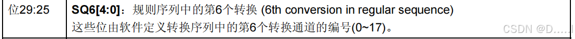 - ADC_SQR3 配置 SQ1 寄存器位对应的 ADC3_IN6