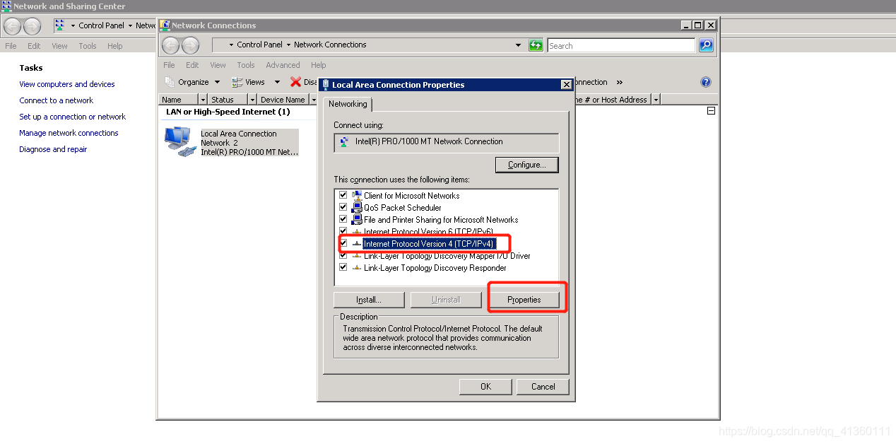 在弹出的属性窗口中,点击【Internet 协议版本4(TCP/IPv4)】,再点击【属性】按钮