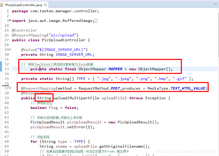 可以看出文件上传的请求为/rest/pic/upload,需要编写对应controller