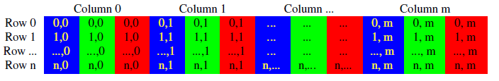RGB三通道彩色图 数据存放格式: