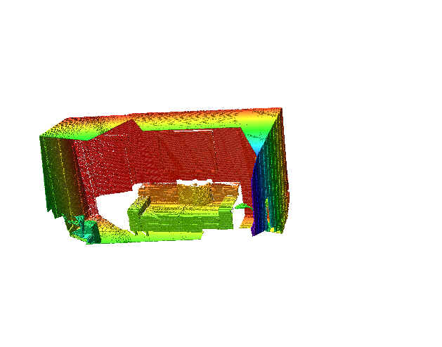 稠密重建方法:根据估计的相机位姿,将RGB-D数据转化为点云,然后进行拼接,最终得到由离散的点组成的点云地图。