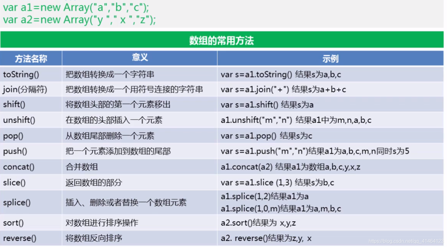 常用调试方法、常用获取HTML组件的八种方法、数据类型、按钮方法绑定、数组/循环、数组的常用方法、字符串常用方法、配合HTML组件
