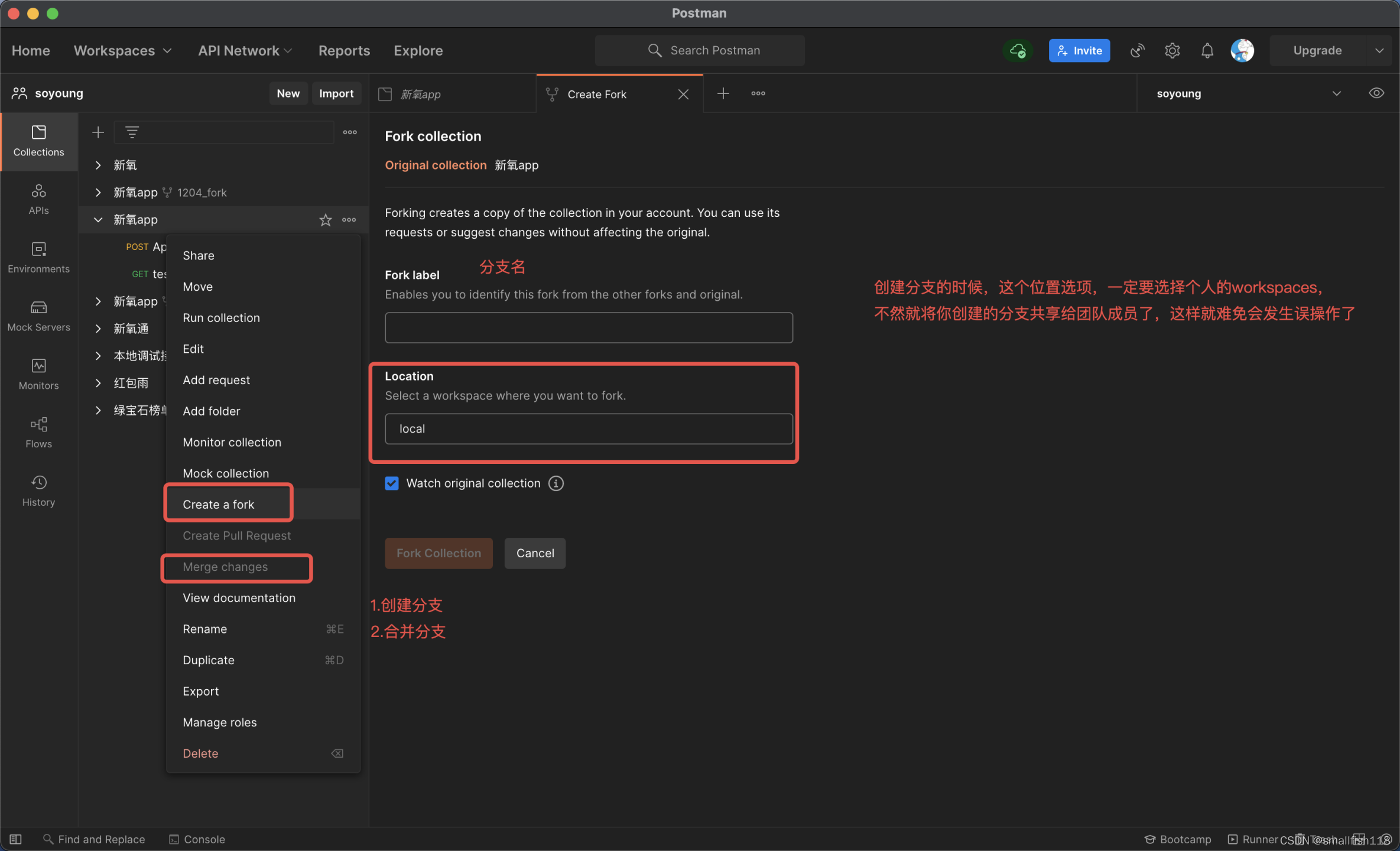 使用postman进行接口用例编写时,肯定不能脱离团队协作。postman没有使用常规的版本管理工具git/svn进行版本管理,而是通过自己的Workspaces进行管理。