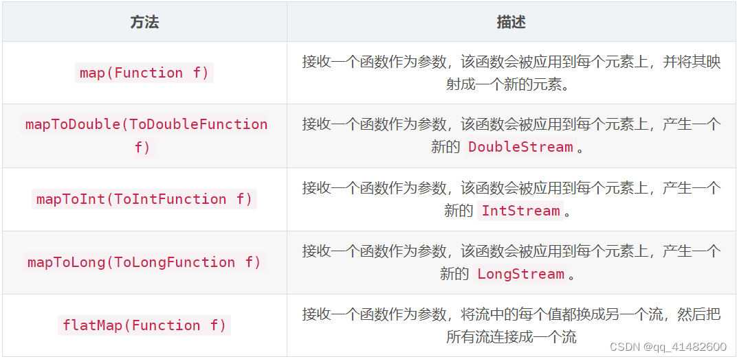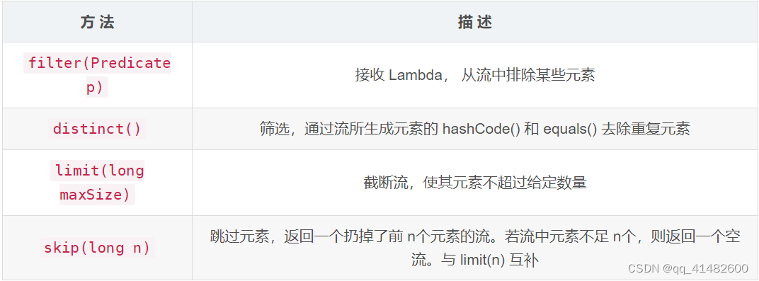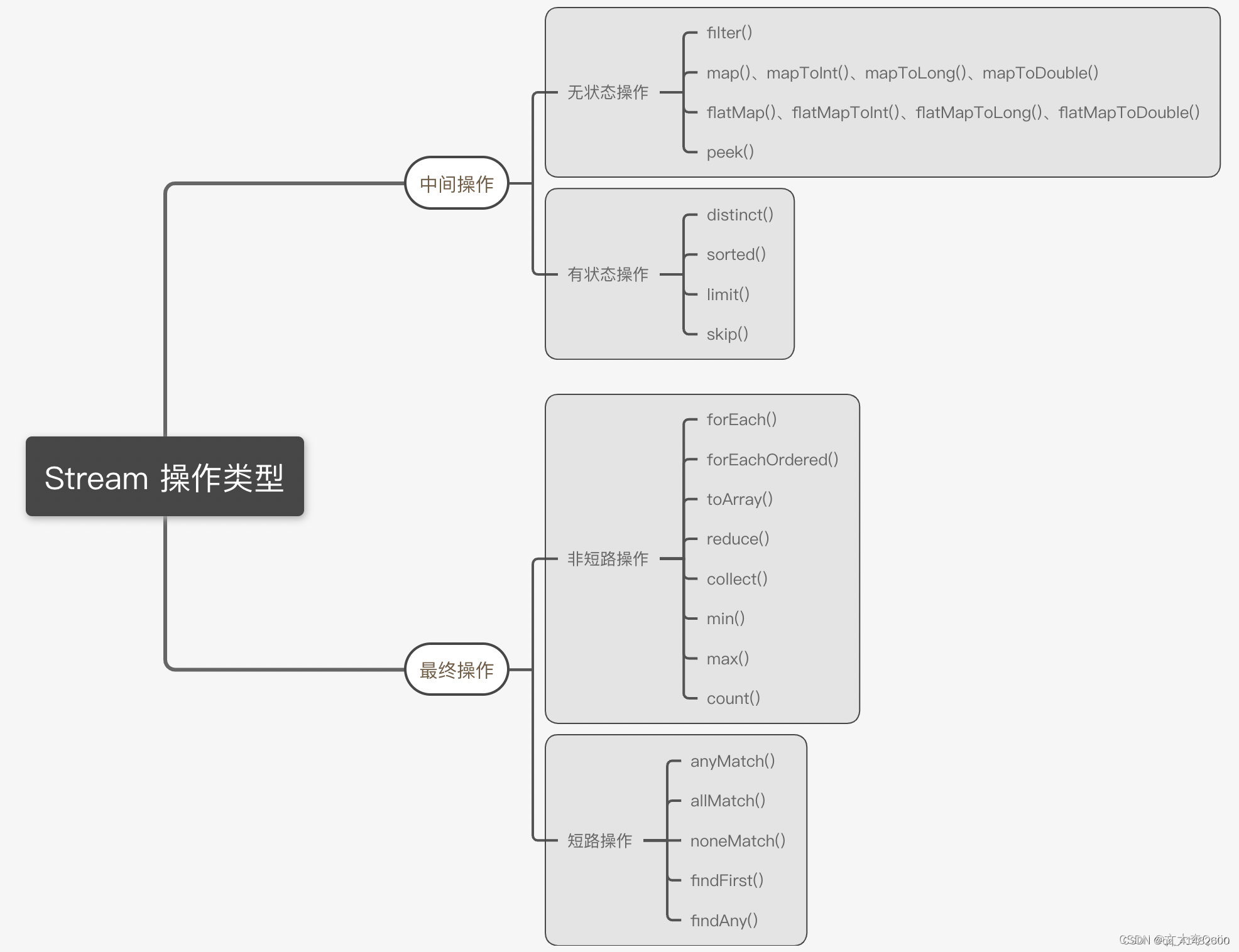 元素流在管道中经过中间操作(intermediate operation)的处理,最后由最终操作(terminal operation)得到前面处理的结果。