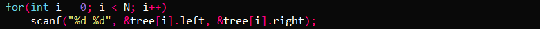 scanf("%d %d", &tree[i].left, &tree[i].right);