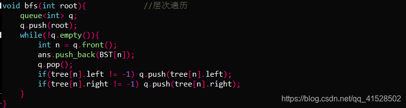 - vector<int> ans:将层次遍历的结果存入ans中;