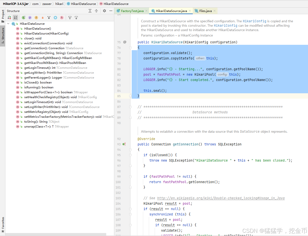 HikariCP 工厂模式示例: HikariCP 使用工厂模式来创建数据库连接池配置和连接实例。
