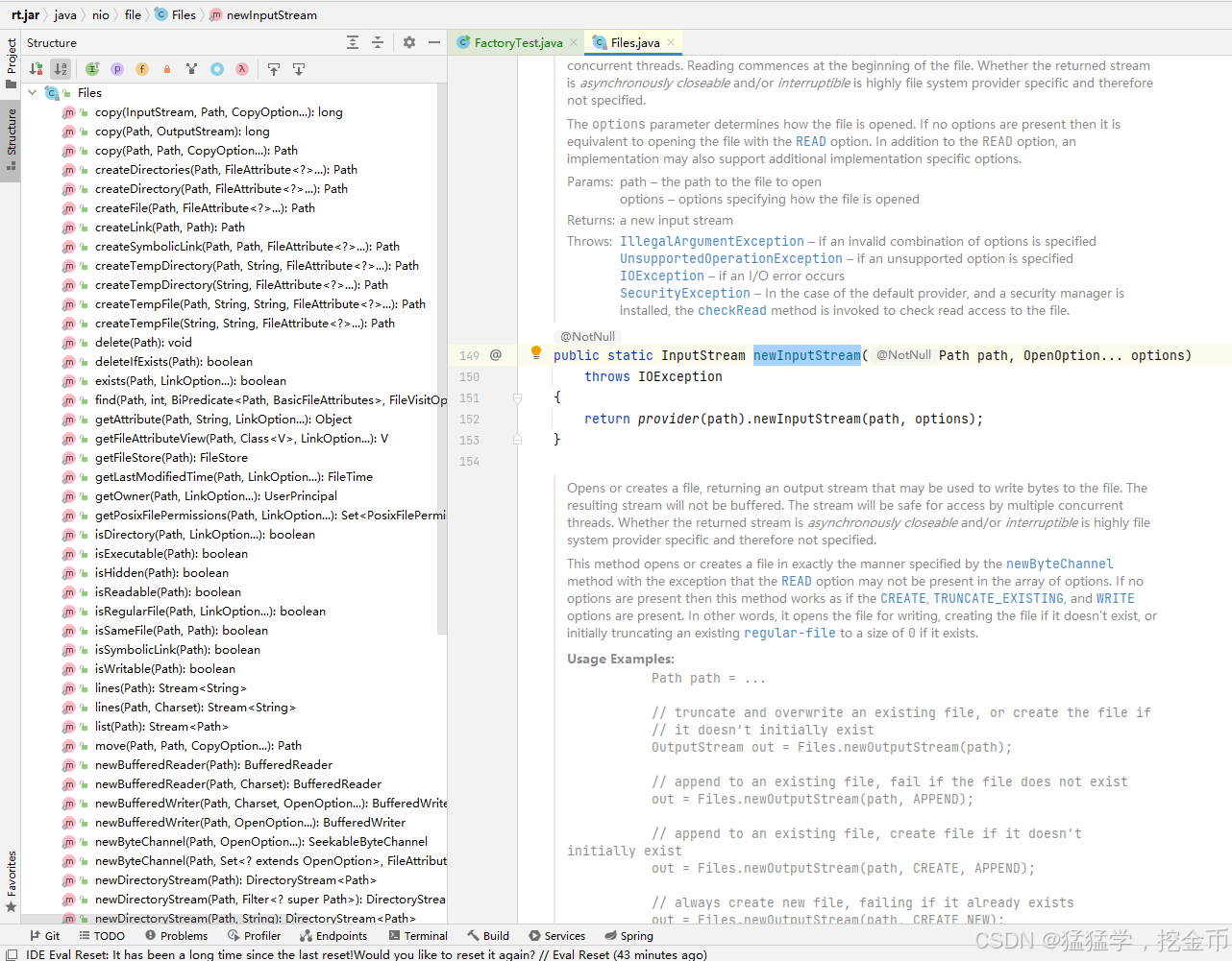java.nio.file.Files: 在 NIO 中,Files类提供了一些静态方法,用于文件和目录操作。通过Files.newInputStream()、Files.newOutputStream()等方法可以获得不同的文件输入输出流,实际上这里面也有工厂模式的应用。